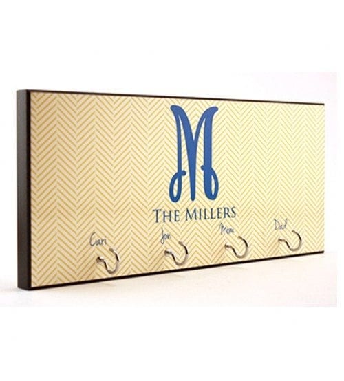 You can also take this a step further and focus on personalizing the sign itself. You can put a monogram and name on it like this, with each member having a hook that literally has their name over it so that no one else can steal it. Or, you can do whatever else you want to this to make it special for your home and its members.